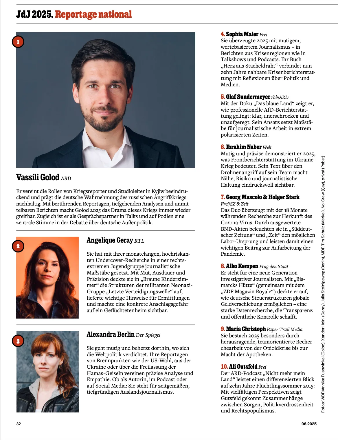 „Seit 2015 verleiht die Ulrich Wickert Stiftung den Peter Scholl-Latour Preis für die Berichterstattung über das Leid von Menschen in Krisen- und Konfliktgebieten.“
